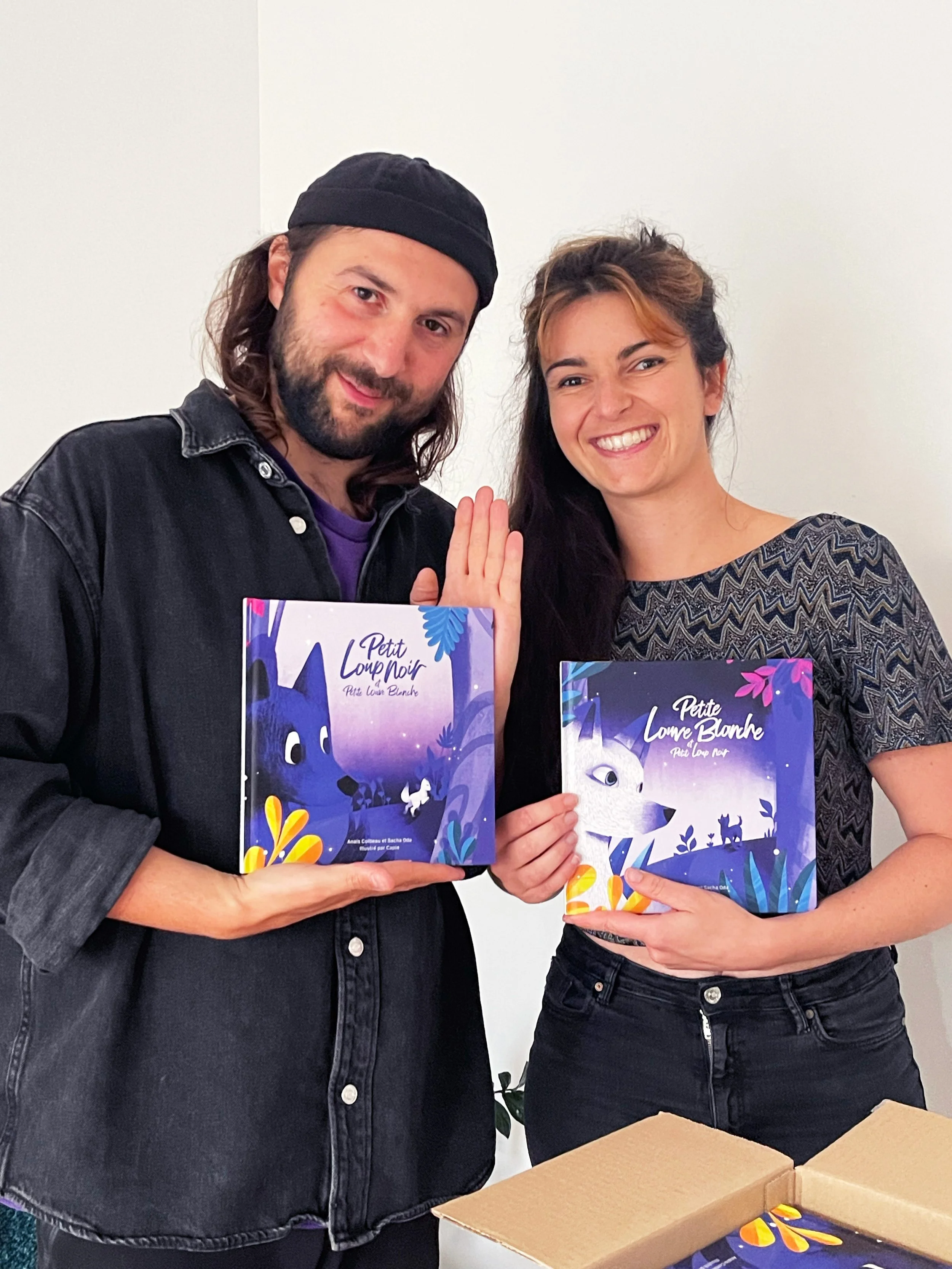 Petit loup noir & Petite louve blanche est un livre pour enfant au concept singulier : deux loups, deux histoires, deux lectures en un seul livre.